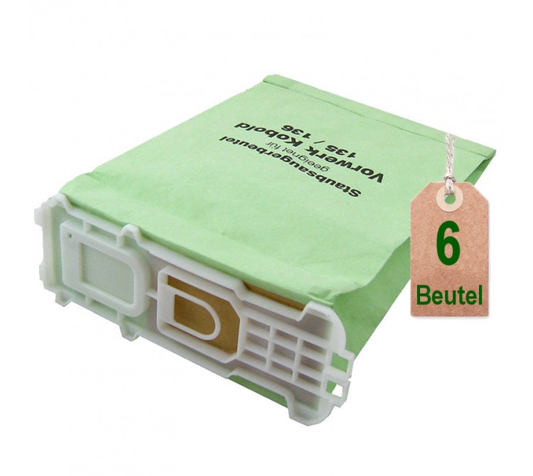 6 Staubsaugerbeutel Filtertüten grün geeignet für Vorwerk Kobold VK 135 und VK 136